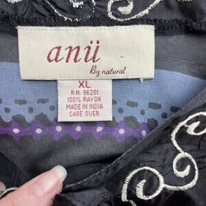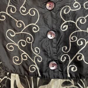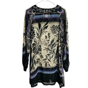Anu Natural Tunic Top Dress Womens XL Black Beige Floral Sheer Embroidered