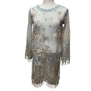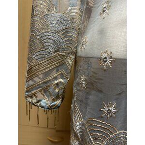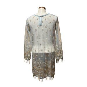 Anum Jung Blue Embroidered Beaded Kurta Unlined Tunic Blouse M