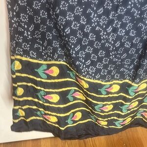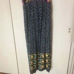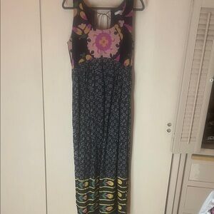 Embrace elegance with this stunning floral maxi dress. Featuring a vibrant multicolor design, it's perfect for any occasion. Stand out with its unique pattern and comfortable fit. Has a side zipper, but could be pulled over head. Dress bottom is silk combo and upper part is cotton. Has a tie feature at back neckline. In preowned condition. Pit to pit measure 21” inches and shoulder to hem is 56” inches.