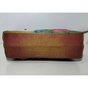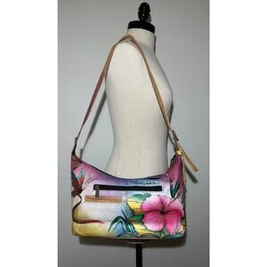 Anuschka Hand Painted Leather Butterflies & Hibiscus U Top Hobo Purse Handbag