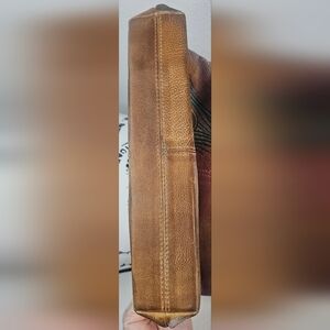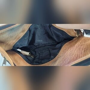 Anuschka Hand Painted Leather Shoulder Bag Peacock Feathers & Hibiscus Flowers