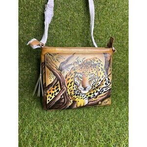 Anuschka Hand Painted Leopard Leather Crossbody Organizer NWT