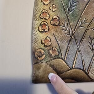 Anuschka Hand-Painted Leather Handbag Purse LG Animal Print Floral Art-to-wear