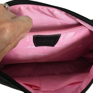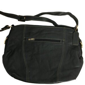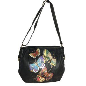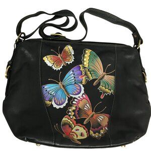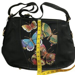 Anuschka Handpainted Leather Large Shoulder Bag Metallic Butterflies Black NEW