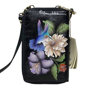 Anuschka Leather Hand Painted Organizer Crossbody Phone Case Hummingbird Heaven