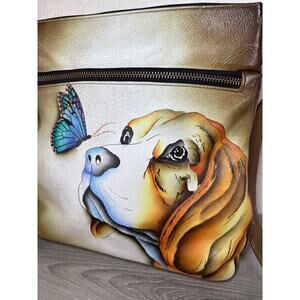 Anuschka NEVER USED Handpainted Leather Crossbody Bag Beagle Dog Puppy