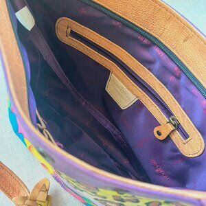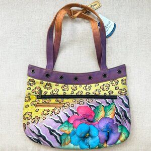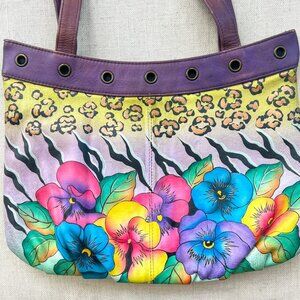 Absolutely stunning Anuschka purse that was hand painted on top grain cowhide leather. This bright and enchanting leopard on floral design is a truly magical Anuschka piece that is one of a kind! Hand signed! A true work of art!