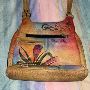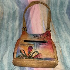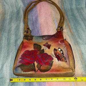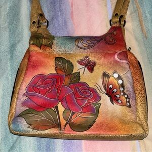 Anuschka Shoulder Bag Hobo Purse Hand Painted Leather Floral Rose Butterfly
