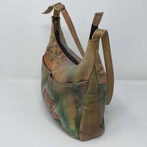 Anuschka Tan Hand Painted Leather Shoulder Bag With Rose Design
