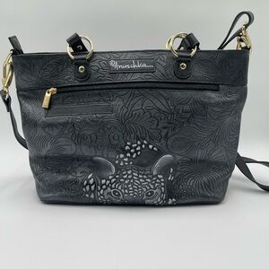 New Anuschka Tooled Leather Cleopatra's Leopard Tote Crossbody Bag with removable, Adjustable Strap. Item is new without tags. Unused. Comes with dust bag. No flaws to note. Smoke free, pet friendly home. Colors may vary based on lighting.