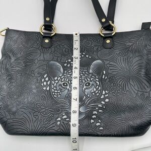 New Anuschka Tooled Leather Cleopatra's Leopard Tote Crossbody Bag with removable, Adjustable Strap. Item is new without tags. Unused. Comes with dust bag. No flaws to note. Smoke free, pet friendly home. Colors may vary based on lighting.