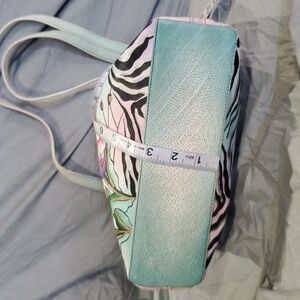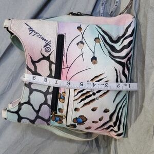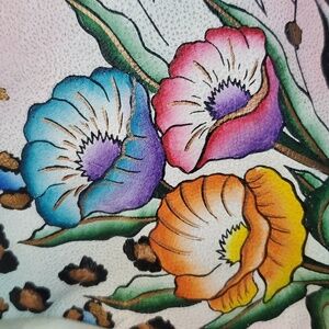 Anuschka handpainted pastel floral animal pattern leather shoulder bag