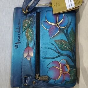 Anuschka nwt little bird floral handpainted leather adjustable strap crossbody