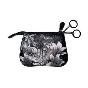 Anushka Womens Wallet Hand Painted Tiger Jungle Black Artsy Leather Zip Pouch