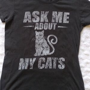 Cute gray t-shirt with cat. Lightweight. Size S. Gently used.