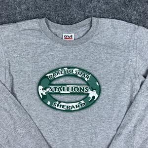Anvil Long Sleeve T-Shirt Mens Size S Gray Shepard Stallions Graphic Tee
