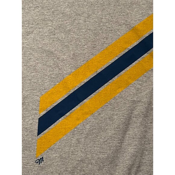 Anvil Men's XL Miller Beer Gray Graphic T-Shirt Yellow & Navy Stripes Pre-Shrunk