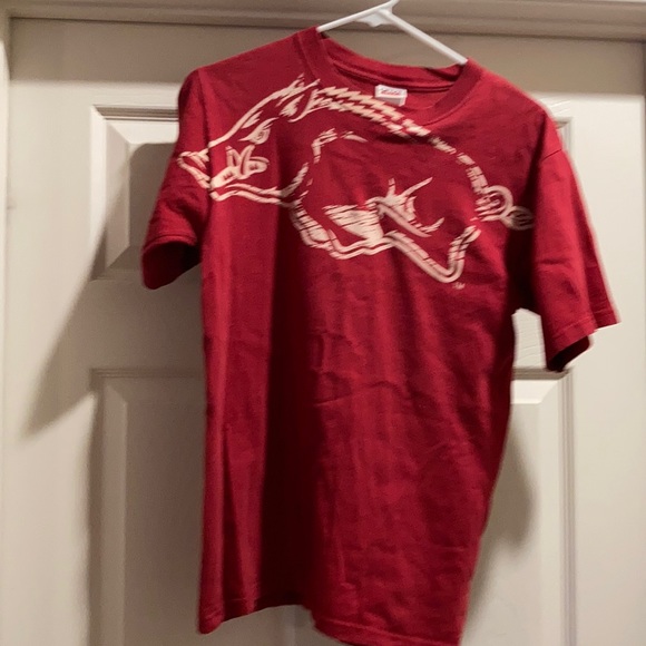 Razorback on the front and on the back used slightly faded short sleeve cotton t-shirt