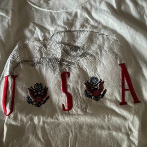 Small Pre Shrunk 100% cotton T-Shirt with Embroidered Patches and USA letters.