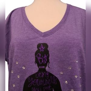 with the phrase " By being yourself you put something beautiful into the world that wasn't here before" in glitter with a star in her hair & a heart in center of her body