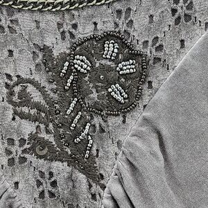Women's Beaded Ruched Front Long Sleeves Bodycon Dress from Anvrdie in Coal.