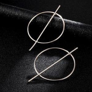 Any 2/$20! Large Silver Circle Vertical Bar Stud Earrings
