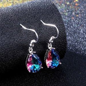 Any 2/$20! Silver Blue/Purple Iridescent Crystal Drop Earrings