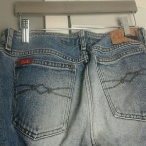 Ok sweetie the Abercrombie shorts are 17in.but they will stretch to 19inches. the mudd capris are 17in. and American eagle capris are 171/2 in.they have a little stretch.