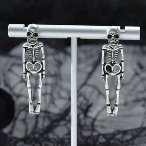 Any 4/$25! Silver Skull Studs w/Skeleton Body Jacket Backs Earrings
