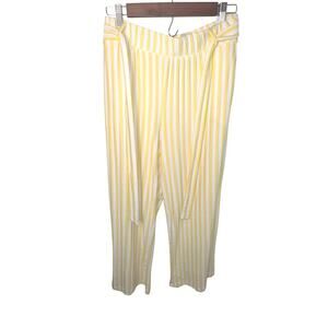 Any Body Women's Size Large Yellow White Striped Belted Elastic Waist Terry Knit Pocketed Wide Leg High Rise Beach Summer Beach Resort Wear Lounge Pant