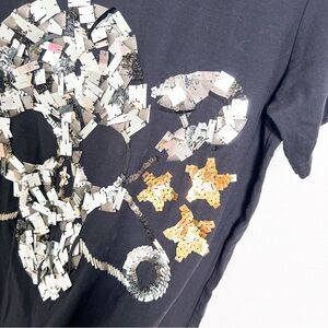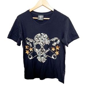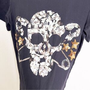 Any Old Iron Free People black sequin skull embellished t shirt tee size medium