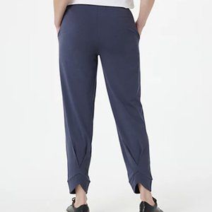 Features: pull-on style, body gathers at waist seam, elastic waistband, slash pockets, back of bottom cuff curves