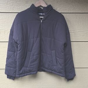 Features: quilted design, collar, drop shoulder, angled welt pockets, long sleeves with storm cuff and thumbhole