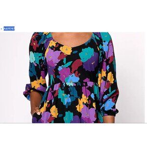 AnyBody Daydreamer Knit Printed Dress with Smocking Black Floral M A619747