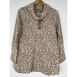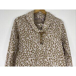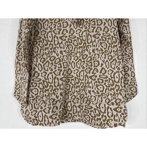 AnyBody Leopard French Terry Pullover Cowl Neck Sweater Size S Desert Olive NEW