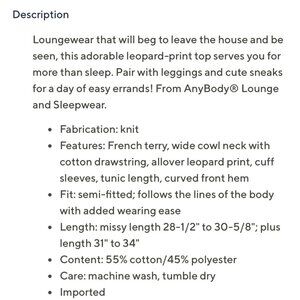 Elevate your fashion game with this stunning leopard print sweater from AnyBody. The pullover style features a cowl neck and long sleeves, perfect for staying cozy and stylish. Made from a soft blend of cotton and polyester, this tight-knit sweater is perfect for any occasion, whether it's casual, party/cocktail, or travel.