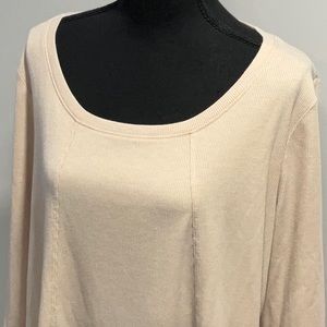 AnyBody Washed Rib Long Sleeve Seamed Top, NWT from QVC. Color is Oatmeal. Feeling loungy? Let AnyBody take you into a leisurely state of mind (and out of your second-day sweats) in this softly ribbed top that relaxes at the waistline.