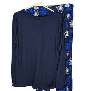 AnyBody Womens Med Pajamas Snowflake Set Soft Stretchy Navy Blue White