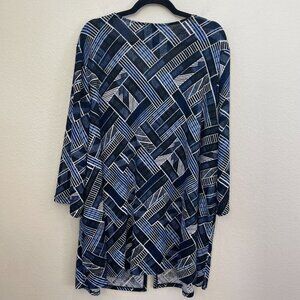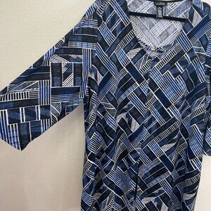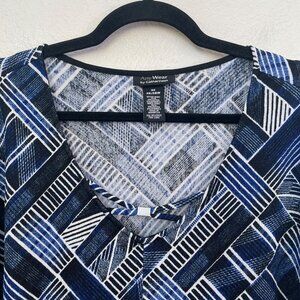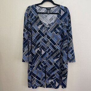 AnyWear By Catherines Plus 3X 26/28W Blue White Abstract Tunic Top Shirt