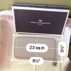 Elegant Anya Hindmarch wallet in gray. Features a sleek design with a subtle logo.