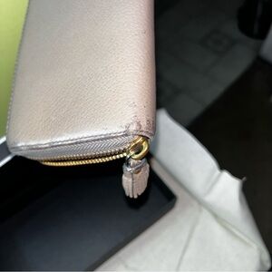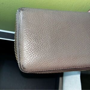 Elegant Anya Hindmarch wallet in gray. Features a sleek design with a subtle logo.
