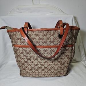 Anya Hindmarch Nevis Handbag in Signature Bow Canvas in excellent used condition. No major stains, damage or tears.