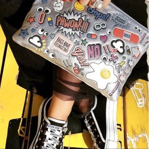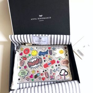 Up for sell is this adorable Metallic Textured-leather wristlet by Anya Hindmarch