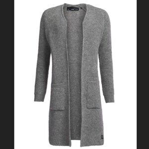 Superdry women's Anya longline cardigan. This longer length cardigan features an open front and has two pockets. The Anya longline cardigan is finished with a Superdry logo patch above the hem.