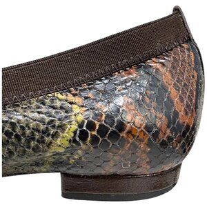 Anyi Lu Brown Snake Embossed Cap Toe Ballet Flats