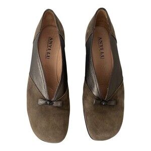 Anyi Lu Shoes Womens Size 39.5 US 9 Suede Leather Low Wedge Loafers