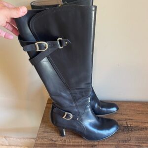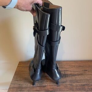 Anyi Lu Viktoria Black Leather Knee High Tall Buckle Boots Size 39 1/2 EU Size9
