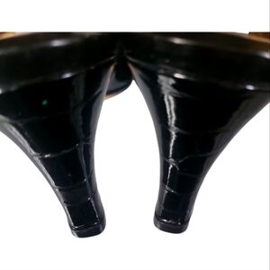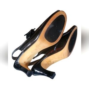 Anyi Lu Women's Black Peep-Toe Slingback Patent Leather Made In Italy Heels