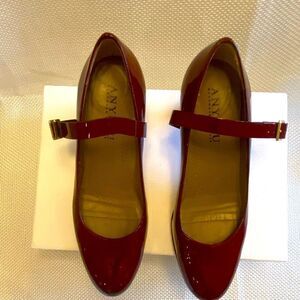 Anyi Lu red patent leather detachable strap Mary Jane pumps made in Italy 38.5