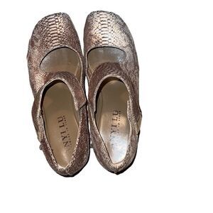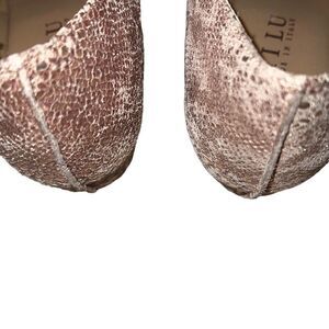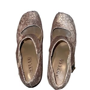 Anyi Lu Gold Snakeskin Leather Shoes Size 5